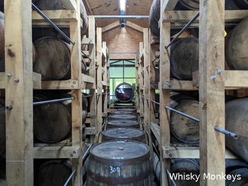 vaten opgeslagen te worden in het whiskypakhuis. Er zijn twee warehouses op het